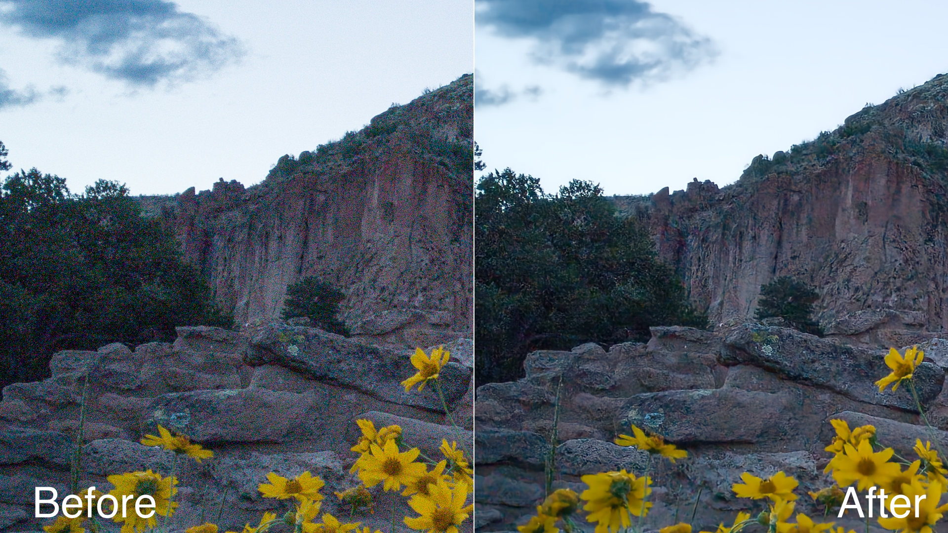 AI denoising allows you to remove noise from images while keeping the details intact without blurring the image.
