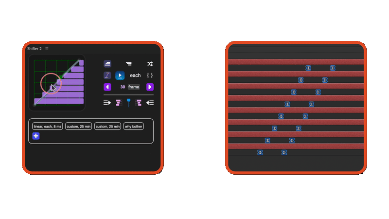Staircase items in Pr and AE. NEW: offset in/out points, more responsive UI, better visual graph, spell book integration, import/export presets and performance improvements